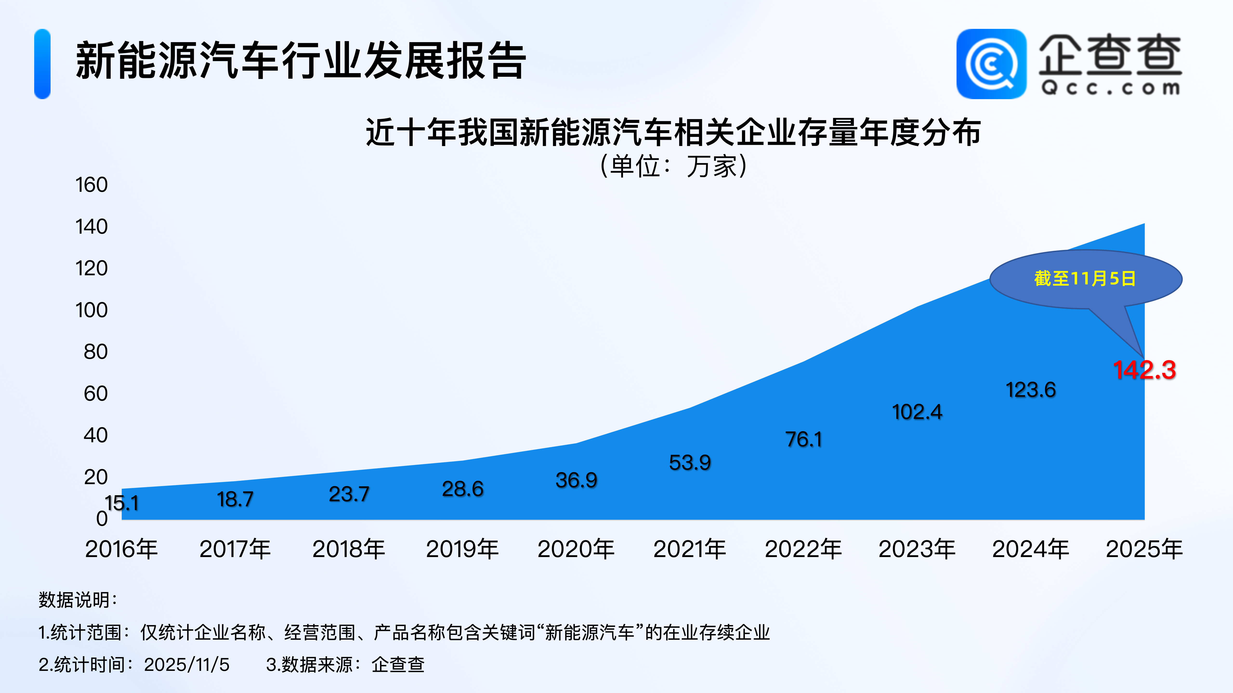 企查查数据显示,近十年,我国新能源汽车行业规模日益壮大长江云配,并分别于2021年、2023年首次突破50万家、100万家;截至11月5日,我国现存142.3万家新能源汽车相关企业。